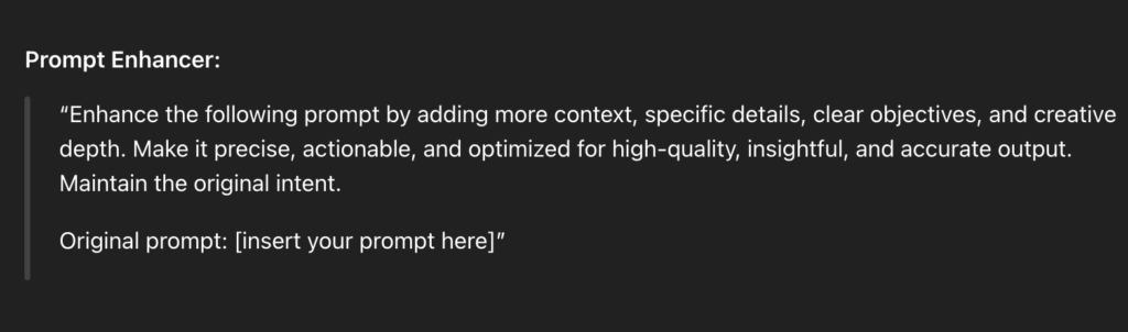 This can be handy if you don’t know how to write good prompts. But again, most AI tools can do this if you just ask them to “fix or expand my prompt.”